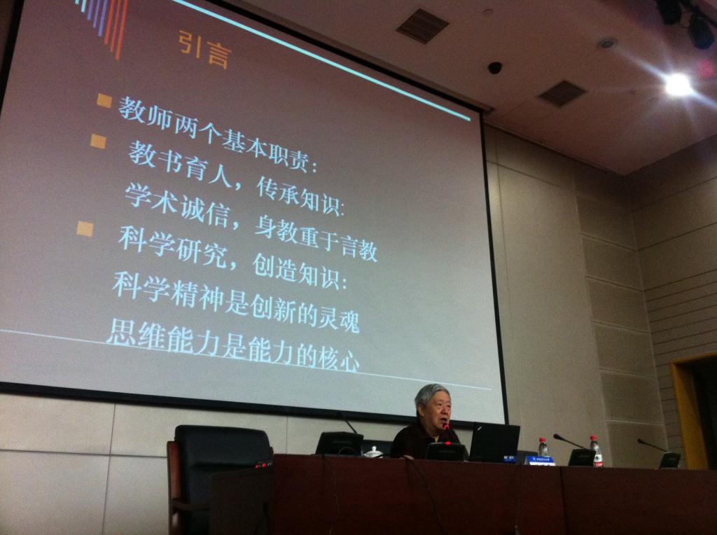 陈懋章院士为学员作了题为“弘扬科学精神,培养科学思维,倡导学术诚信”的专题报告,陈院士强调教师的基本职责就是:教书育人、学术诚信;科学研究、勇于创新。陈院士深入分析了产生学术不端行为的根源,向学员们详细介绍了学术诚信的相关基本概念及学术不端的界定。陈院士的报告全面系统,严谨细致使学员们对学术诚信有了全面和深刻的认识,给学员以警示,规范了学员们的学术行为。