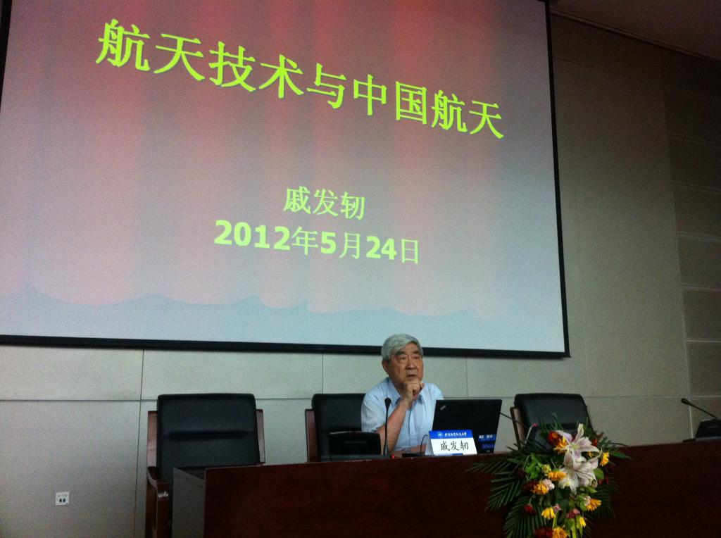 结业典礼上戚发轫院士为学员们作了“航天技术与中国航天”专题报告,详细介绍了我国航天事业的发展与成就,从“进入太空能力”、“利用太空能力”及“控制太空能力”三个方面介绍了我国航天事业的发展历程及计划展望。戚院士鼓励学员们要在岗位上发扬“特别能吃苦、特别能战斗、特别能攻关、特别能奉献”的载人航天精神。戚院士的报告精彩纷呈,催人奋进,学员们听后心情激动,受益匪浅,从前辈身上我们看到了努力的方向,获得了奋发向上的力量。